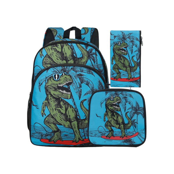 Mochila con lonchera de dinosaurio disponible en DS Virtual.