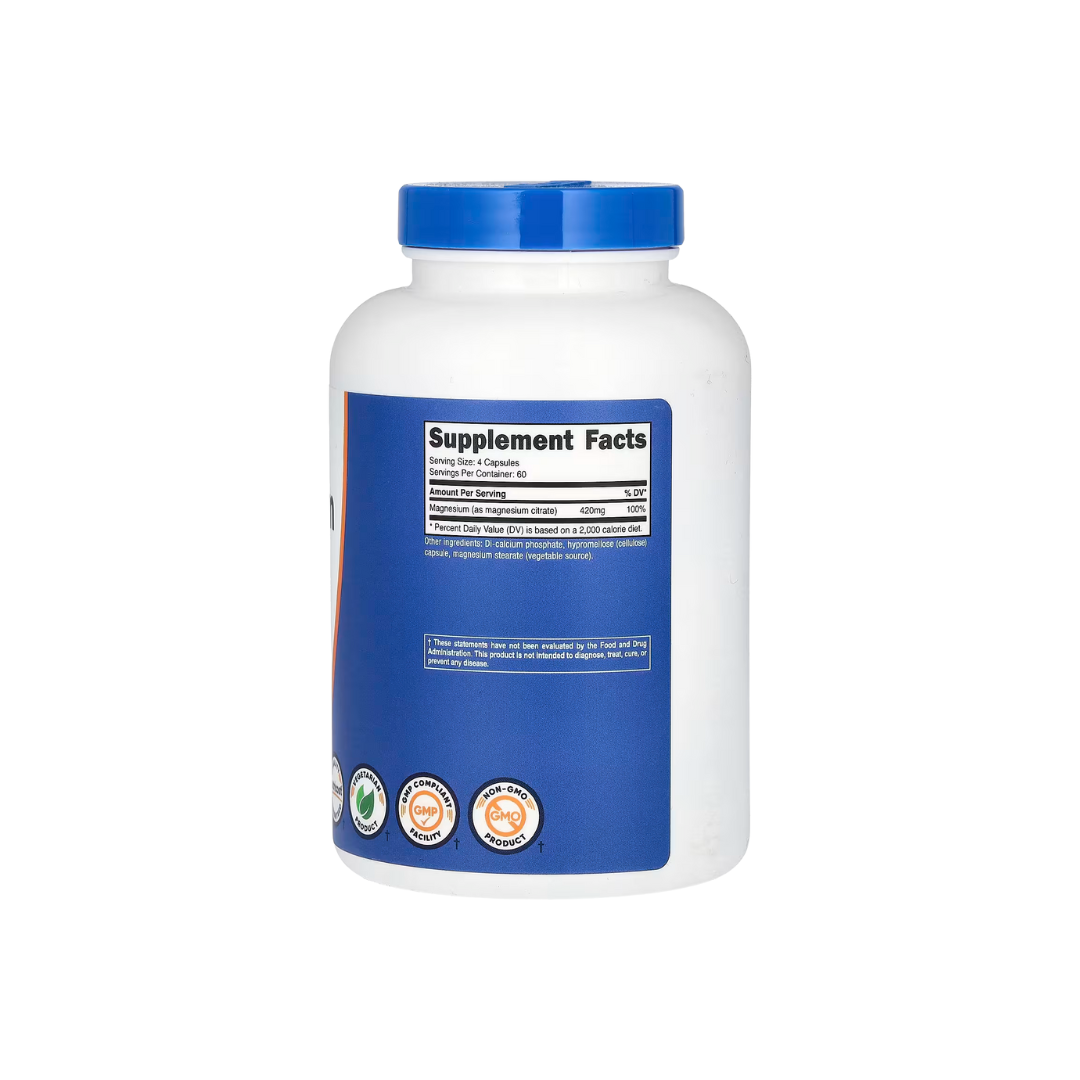 Suplemento de alta biodisponibilidad que aporta magnesio en forma de citrato, ideal para apoyar la salud muscular, ósea y nerviosa. Presentación en cápsulas fáciles de ingerir.