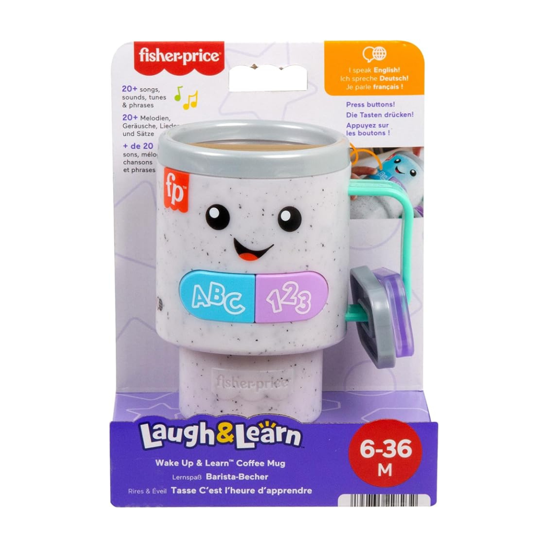 Taza de Café Despierta y Aprende de Fisher-Price acompaña a tu bebé de 6 a 36 meses en sus primeros aprendizajes. Con luces, sonidos, canciones y frases divertidas, estimula los sentidos y enseña números, colores y saludos mientras el pequeño juega como los grandes.