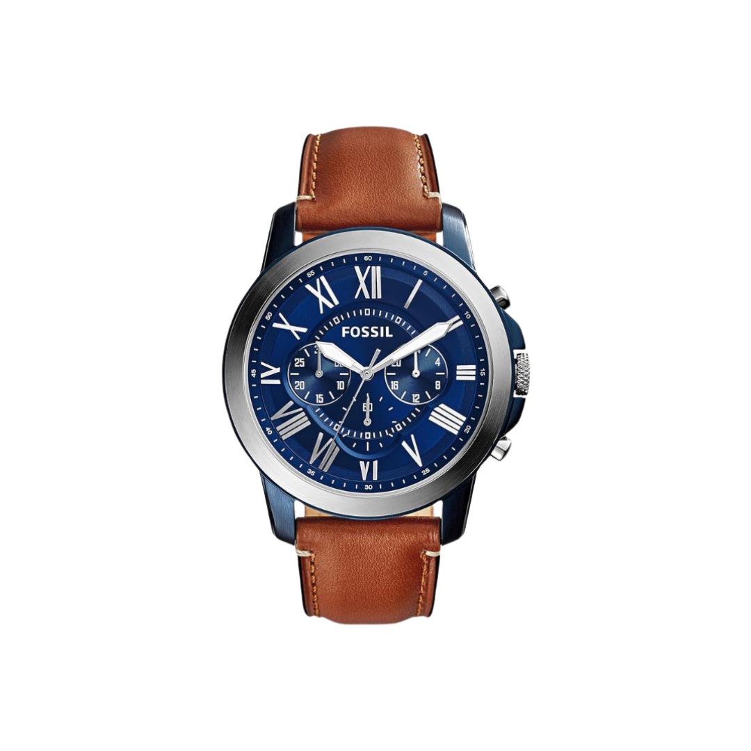 Fabricado para trascender a las modas pasajeras, nuestro refinado Grant es una inversión de éxito que se adapta a cada ocasión. Este atemporal reloj con cronógrafo se actualiza para la temporada con una atractiva esfera azul con bisel en tono plateado, agujas blancas y correa de piel marrón claro.