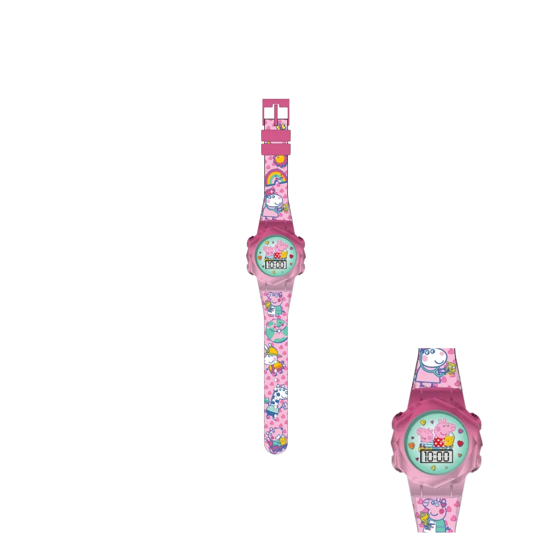 Reloj digital de Peppa Pig para niñas, con diseño colorido y correa ajustable, ideal para uso diario.