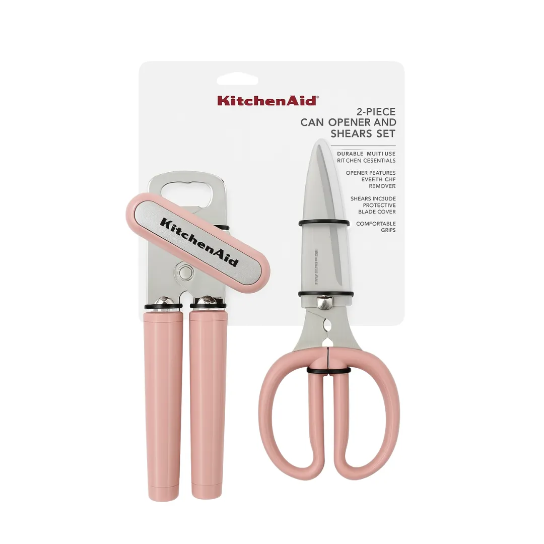 Set de Abridor de Latas y Tijeras Rosadas Kitchenaid